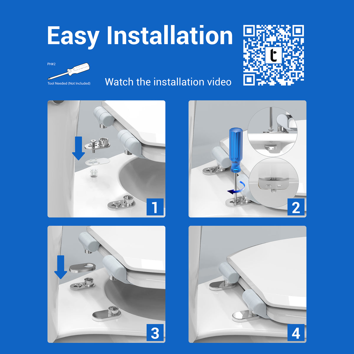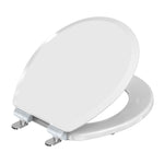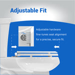 - Never Loosens: Arch Tite fastening system keeps the toilet seat securely in place and will not loosen over time; four non slip bumpers ensure a stable, wobble free fit; installs easily with a standard screwdriver; Precision engineered mounting hardware adjusts to fit all round toilets; ensures a secure, custom alignment