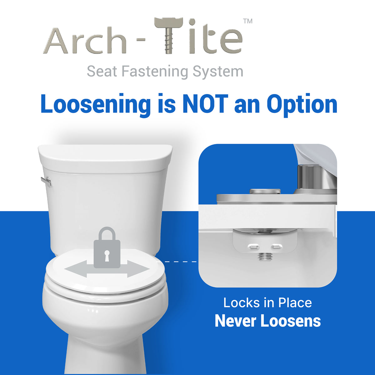 The Arch-Tite seat fastening system is wobble-free and never loosens.