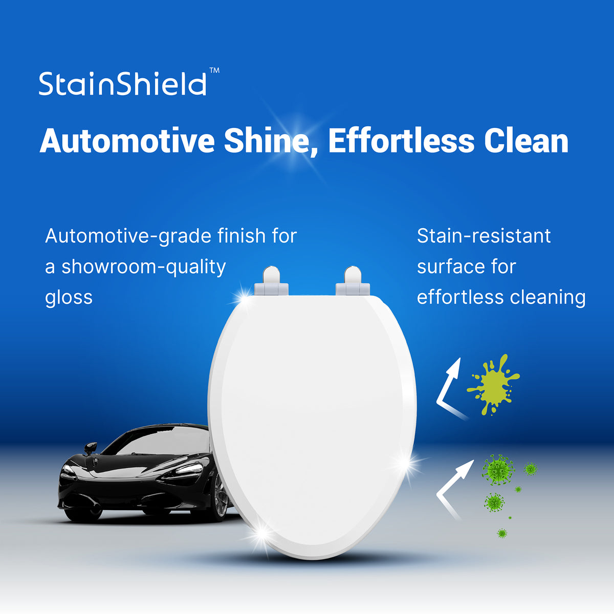 - StainShield: Automotive grade, ultra high gloss finish resists stains, discoloration, and odors; wipes clean effortlessly for long lasting beauty